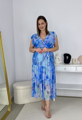 ALISON DŁUGA SUKIENKA PLUS SIZE Z ELASTYCZNEJ SIATECZKI W KWIATY. NIEBIESKA 02