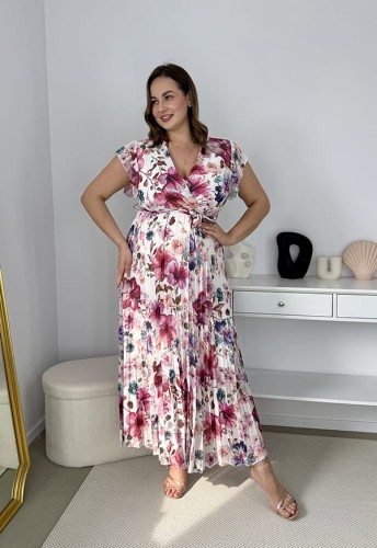 BELLA SUKIENKA MAXI PLUS SIZE PLISOWANA W DUŻE KWIATY. HIBISKUS 10