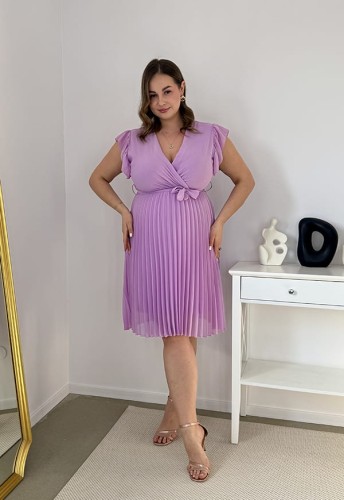CLARET GŁADKA SUKIENKA PLISOWANA PLUS SIZE DO KOLAN. LILIOWA 01