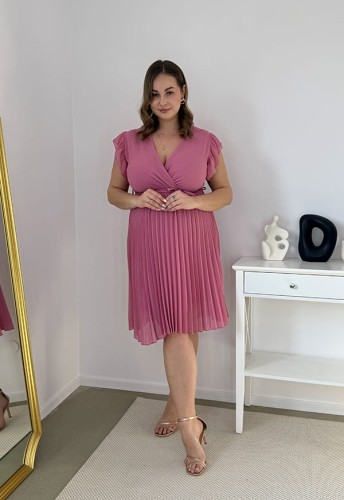 CLARET GŁADKA SUKIENKA PLISOWANA PLUS SIZE DO KOLAN. PUSTYNNY RÓŻ 05
