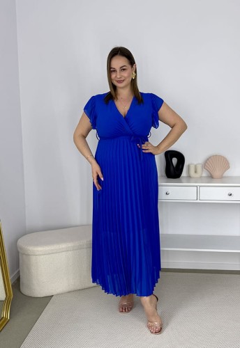 Zjawiskowa długa sukienka z szyfonu z plisowanym dołem.