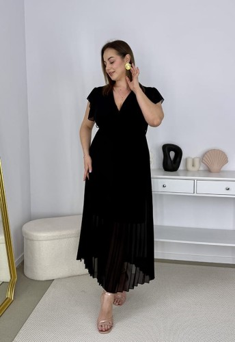 CLARET MAXI DŁUGA SZYFONOWA SUKIENKA PLISOWANA Z PASKIEM. CZARNA 02