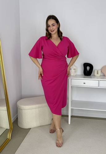 CLAUDIA ELEGANCKA SUKIENKA PLUS SIZE OŁÓWKOWA . FUKSJA 06