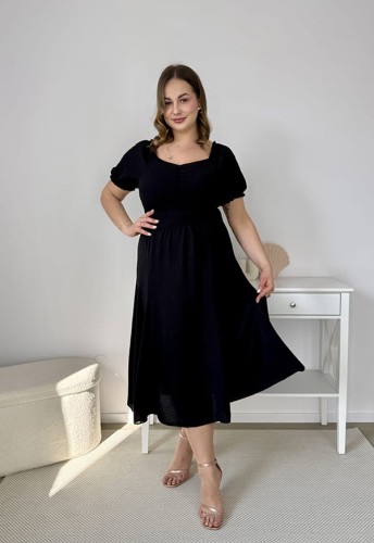 DAISY II GŁADKA ROZKLOSZOWANA SUKIENKA MIDI HISZPANKA. CZARNA 08