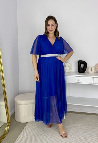 DORA II MAXI TIULOWA DŁUGA SUKIENKA Z SIATECZKI OZDOBNYM PASKIEM. CHABROWA 05