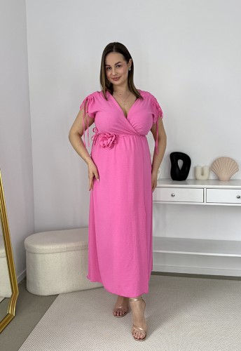 FLOWER DŁUGA SUKIENKA Z KWIATEM NA PASKU. CUKIERKOWY RÓŻ 01