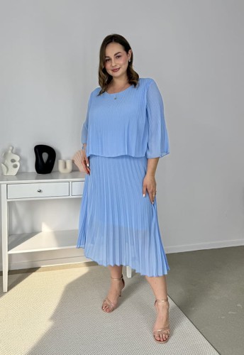 GOLDI PLISOWANA SUKIENKA MIDI. BŁĘKITNA 02