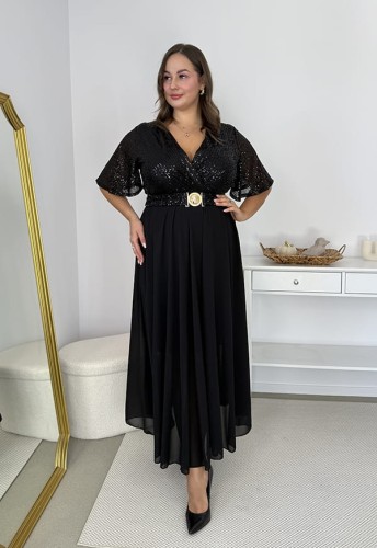GRACY MAXI SUKIENKA DŁUGA PLUS SIZE Z SZYFONOWYM DOŁEM I CEKINAMI. CZARNA 03