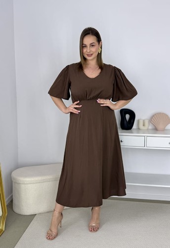 KAREN WISKOZOWA SUKIENKA Z ROZKLOSZOWANYM DOŁEM. CZEKOLADOWA 04