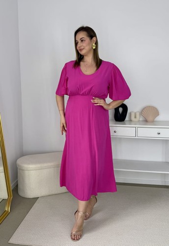 KAREN WISKOZOWA SUKIENKA Z ROZKLOSZOWANYM DOŁEM. FUKSJA 01
