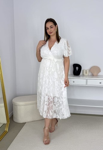 LUIZA SZYFONOWA SUKIENKA MIDI ROZKLOSZOWANA Z OZDOBNYM HAFTEM. BIAŁA 03