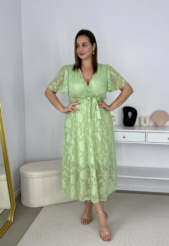 LUIZA SZYFONOWA SUKIENKA MIDI ROZKLOSZOWANA Z OZDOBNYM HAFTEM. PISTACJA 05