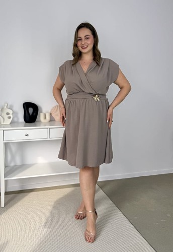 MEG SUKIENKA ROZKLOSZOWANA PLUS SIZE Z OZDOBNĄ BROSZKĄ. MOCCA 03