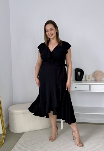 OLIVIA KOPERTOWA ROZKLOSZOWANA SUKIENKA PLUS SIZE Z FALBANAMI. CZARNA 04