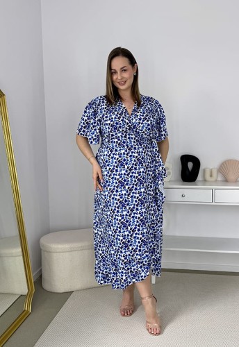 SAMANTA KOPERTOWA ROZKLOSZOWANA SUKIENKA PLUS SIZE W KWIATY. NIEBIESKA 01