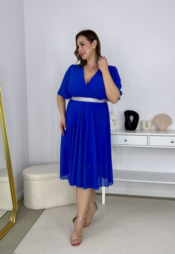 SOFIA II SZYFONOWA SUKIENKA DO KOLAN ROZKLOSZOWANA Z OZDOBNYM PASKIEM. CHABROWA 06