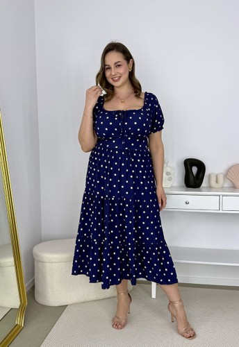 WILLMA ROZKLOSZOWANA SUKIENKA MIDI HISZPANKA W KROPKI . GRANATOWA 05