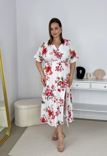 XENIA MUŚLINOWA SUKIENKA Z ROZKLOSZOWANYM DOŁEM W KWIATY . BIAŁA 03